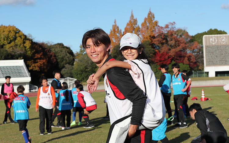 スポーツと健康は非常に密接な関係にあります。名古屋グランパスの選手たちは、専門のトレーナーや栄養士のサポートを受けながら、毎試合ベストのパフォーマンスを発揮できるよう体調管理に気を配っています。そのノウハウを生かし、食育の推進、子どもたちが楽しみながら体を動かせるサッカー教室の開催、そして地域の健康増進に向けた取り組みを行い、誰もが健やかに過ごせる社会づくりに向けて、努めてまいります。
