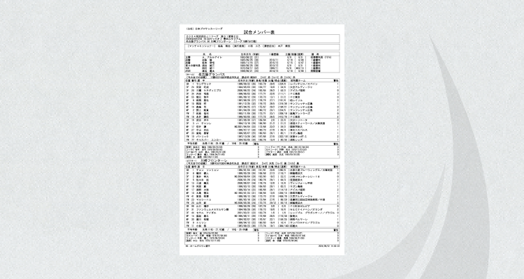 会員証認証試合メンバー表をスタジアムでお渡しします。また、マイページからもダウンロードいただけます。