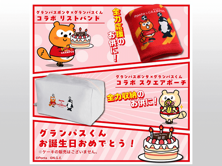 グランパスポンタが師匠と慕うグランパスくんとのコラボアイテムに大人気のリストバンド、スクエアポーチが登場!