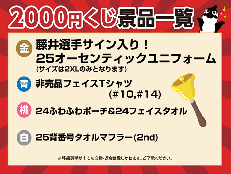 ※移籍選手が出ても交換・返金は致しかねます。ご了承ください。