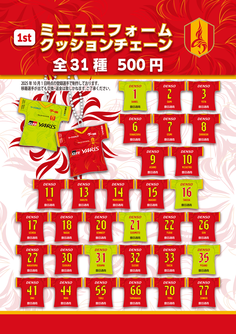 ミニユニフォームクッションチェーン1stガチャに藤井選手、木村選手が新登場!