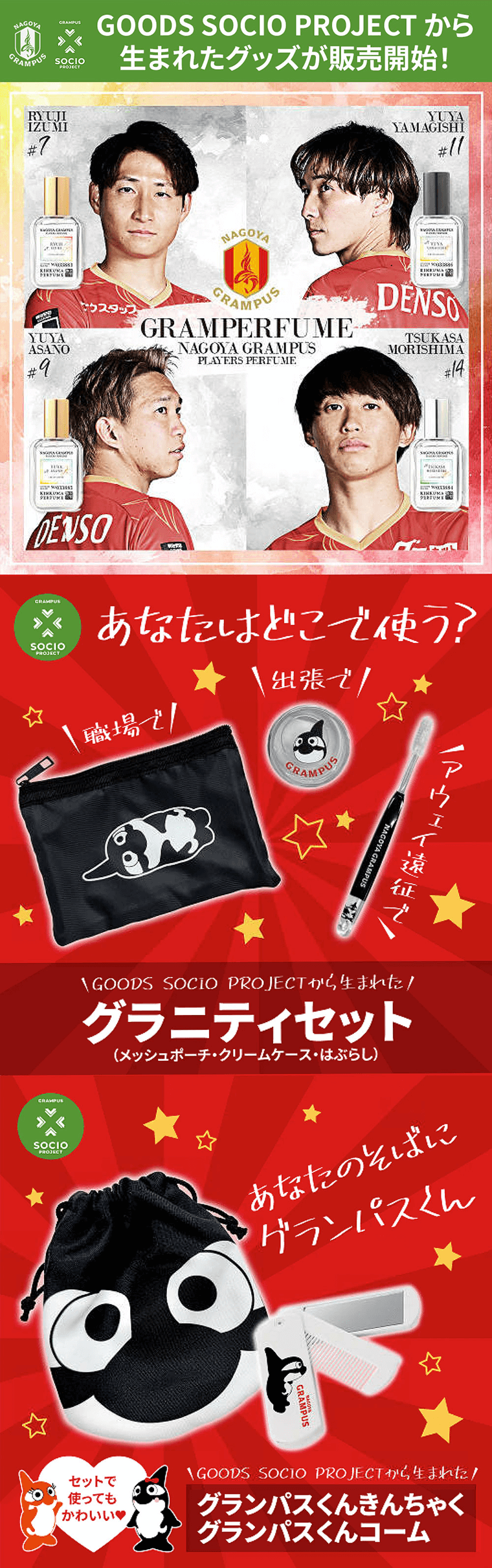 名古屋グランパスは、GRAMPUS SOCIO PROJECTの第4弾として「誰もがもっと笑顔になれるグランパスグッズを考える」をテーマとしたGOODS SOCIO PROJECT を実施しています。