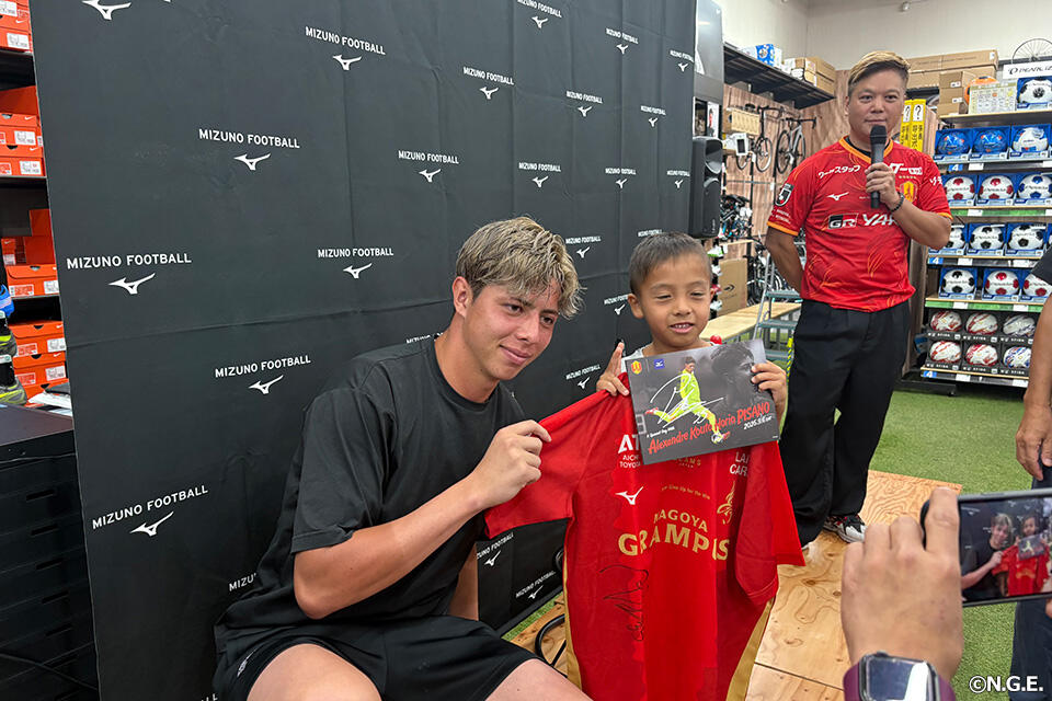 見事勝ち抜いた方にはミズノ様製トレーニングウェアへピサノ選手のサインを入れて贈呈。