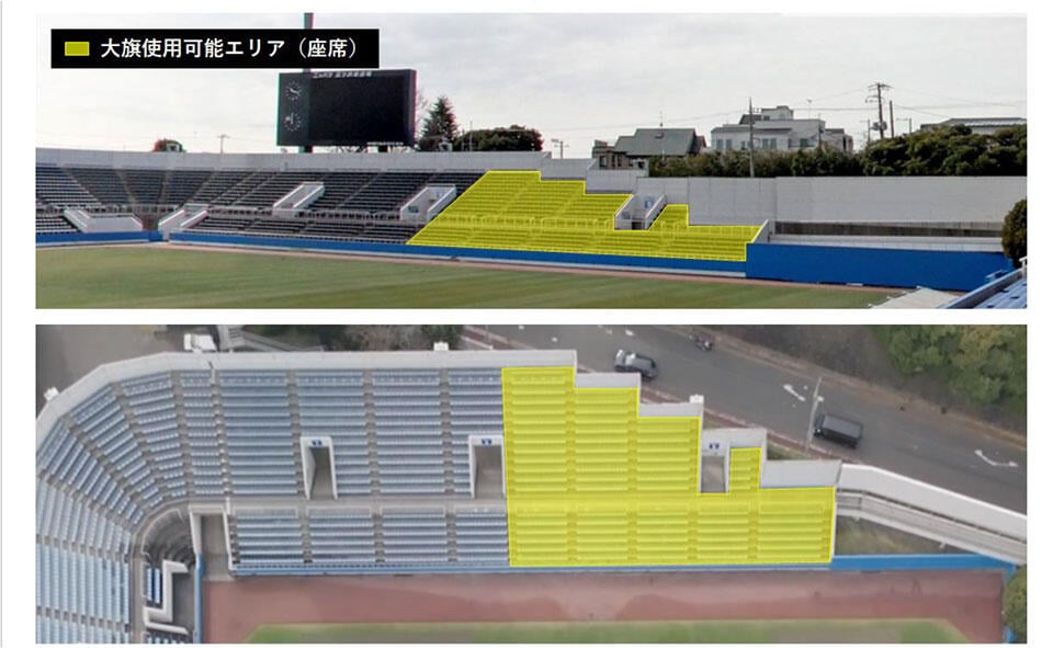 - 大旗を使用して応援ができるエリア(座席)を下記の通りとさせていただきます。