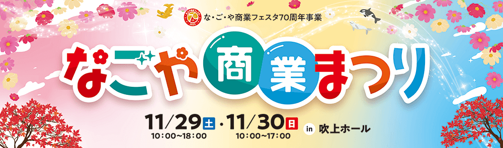 | 会場 | 名古屋市中小企業振興会館(1F吹上ホール)なごや商業まつり会場内 住所:名古屋市千種区吹上二丁目6番3号 |