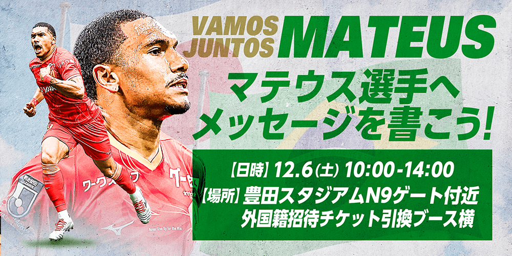【12/6(土)最終戦企画】負傷でブラジル帰国中のマテウス選手を元気づける Lフラッグ応援メッセージ企画を実施します!