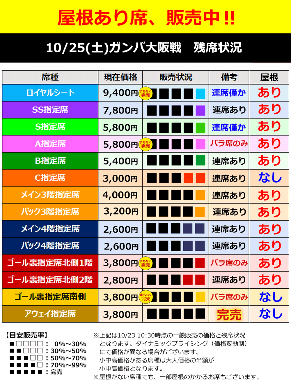 今週末開催となる10/25(土)G大阪戦は、現時点で約32,000枚を超える発券をいただいております。