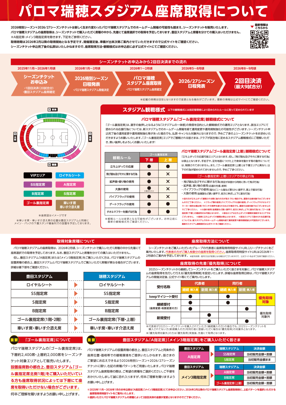 2026特別シーズン+2026/27シーズンチケット|パロマ瑞穂スタジアム座席取得・観戦様式について