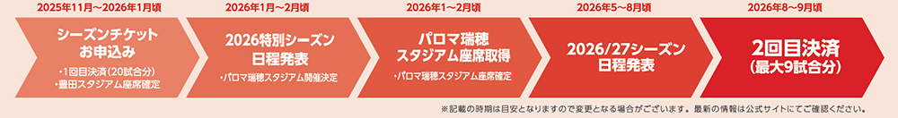 シーズンチケットお申込から2回目決済完了までの流れは以下の通りとなります。