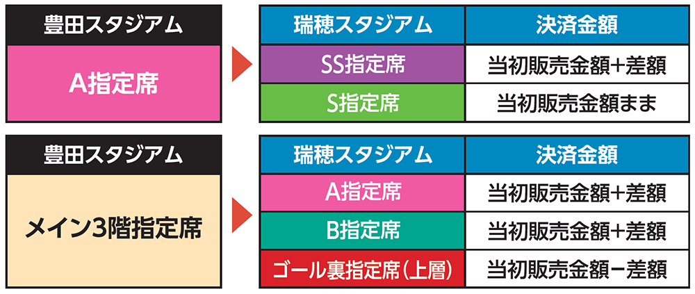 Q.2 豊田スタジアム・パロマ瑞穂スタジアムそれぞれ席種を変更して購入することはできますか?