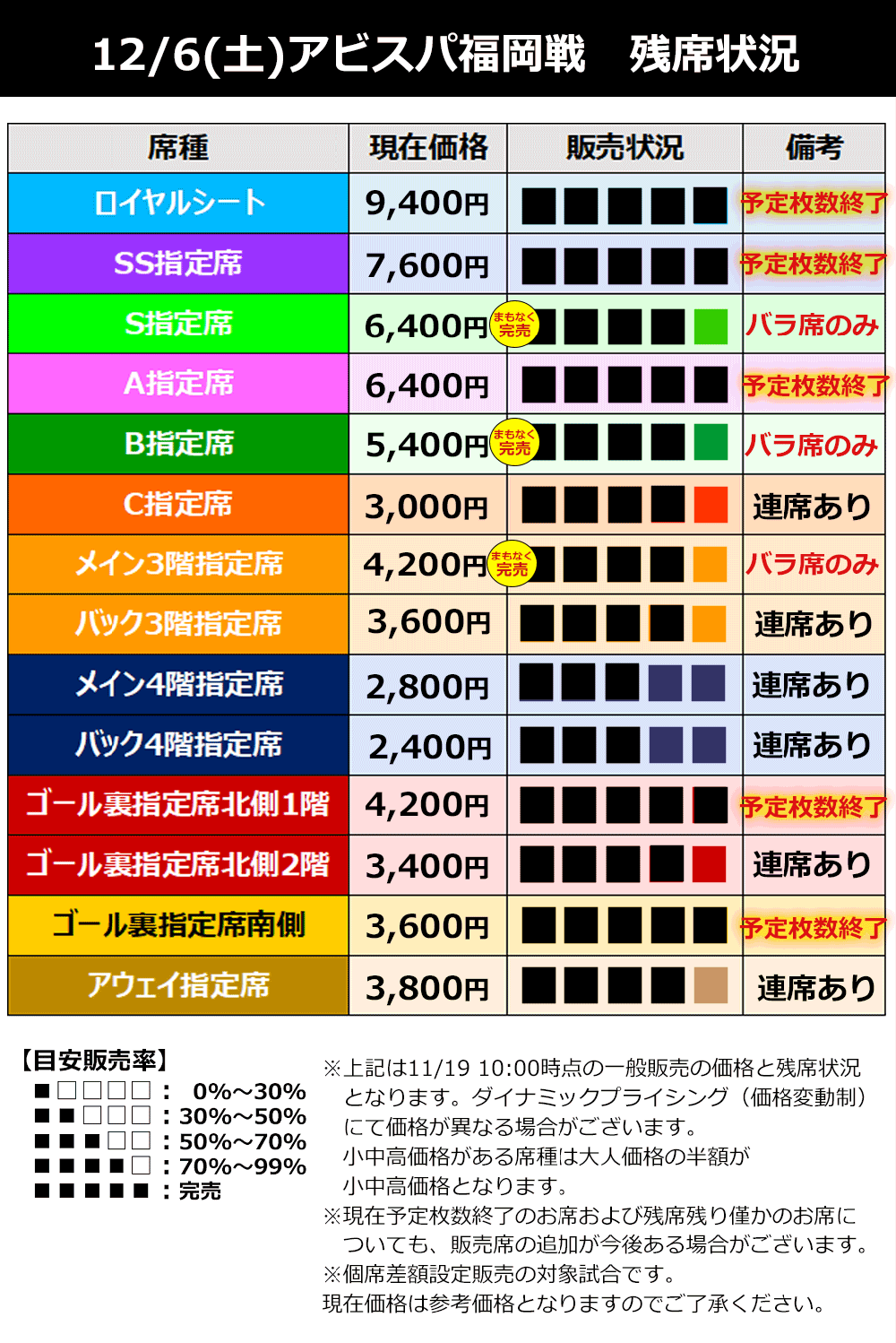 12/6(土)福岡戦|残席情報と「注釈付ゴール裏指定席2階北側」販売のお知らせ