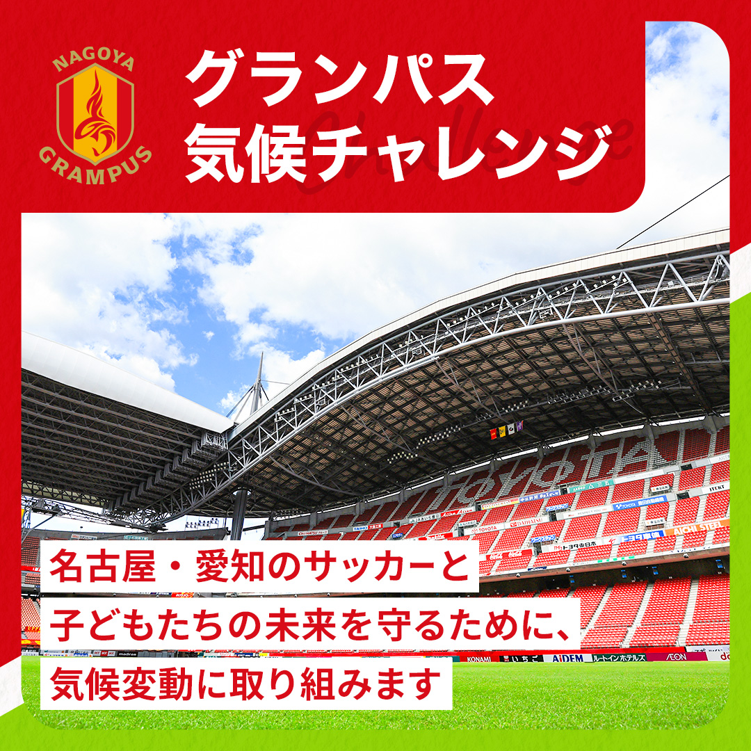 このままだと、名古屋・愛知のサッカーがなくなってしまう。サッカーを楽しみたいと思う子どもたちが減ってしまう。サッカーを通じて夢や楽しみを持ち続けてもらう子どもたちの未来を守るために、名古屋グランパスは「気候変動」に取り組みます。
