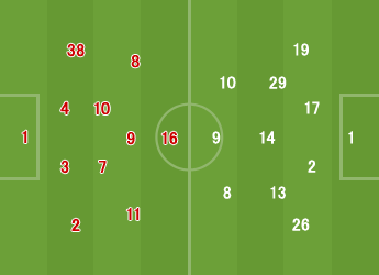 6 | 4 | 10 | ゴールキック | 12 | 3 | 9 |