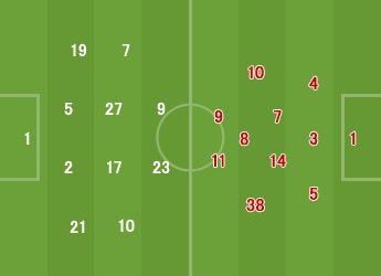 2 | 0 | 2 | オフサイド | 2 | 2 | 0 |