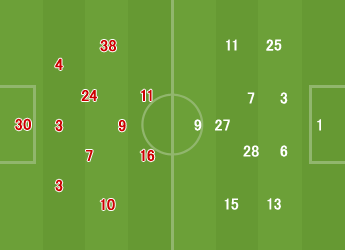 5 | 4 | 9 | コーナーキック | 3 | 3 | 0 |