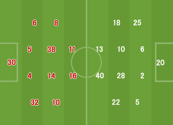 10 | 3 | 13 | 直接フリーキック | 17 | 6 | 11 |