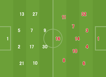 4 | 3 | 7 | ゴールキック | 6 | 2 | 4 |