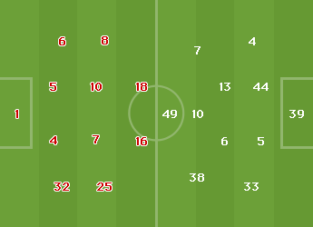7 | 3 | 10 | 直接フリーキック | 21 | 10 | 11 |