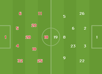 7 | 6 | 13 | ゴールキック | 14 | 6 | 8 |