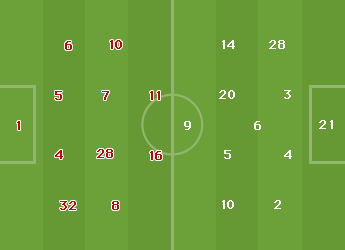 1 | 5 | 6 | ゴールキック | 14 | 4 | 10 |