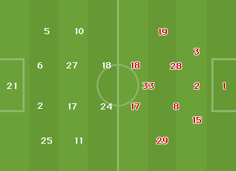 6 | 7 | 13 | ゴールキック | 10 | 8 | 2 |