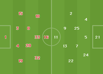 1 | 2 | 3 | オフサイド | 1 | 1 | 0 |