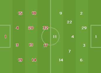 3 | 3 | 6 | ゴールキック | 10 | 2 | 8 |