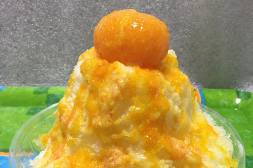 氷の上に甘くて美味しい愛媛のみかんを丸ごとドーンと乗せたかき氷。