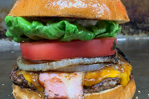 国産小麦のバンズ(パン)に、厳選した部位のみを使用した100%ビーフのパテ(お肉)、そんな拘りのバンズとパテに併せるソースは野菜を半日かけて煮込んだ店オリジナルのBBQソース!