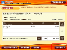 チケットの申込内容をよく確認していただいた後、【次に進む】をタッチしてください。