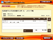表示されたお席ををご購入される場合は、【発券申込み】をタッチしてください。※連続したお席がご用意できなかった場合は、この画面にてご案内させて頂きます。