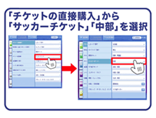 【チケットの直接購入】から【サッカーチケット】→【中部】をタッチして選択してください。